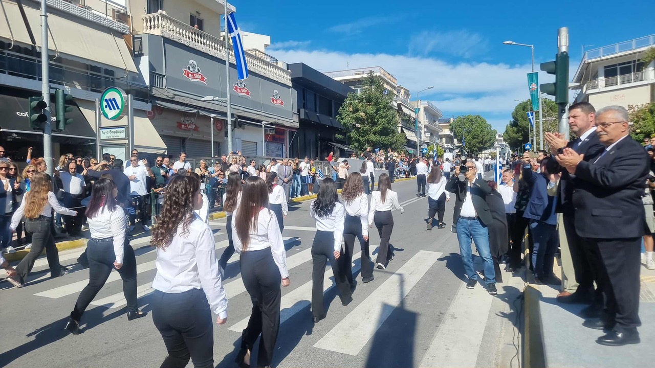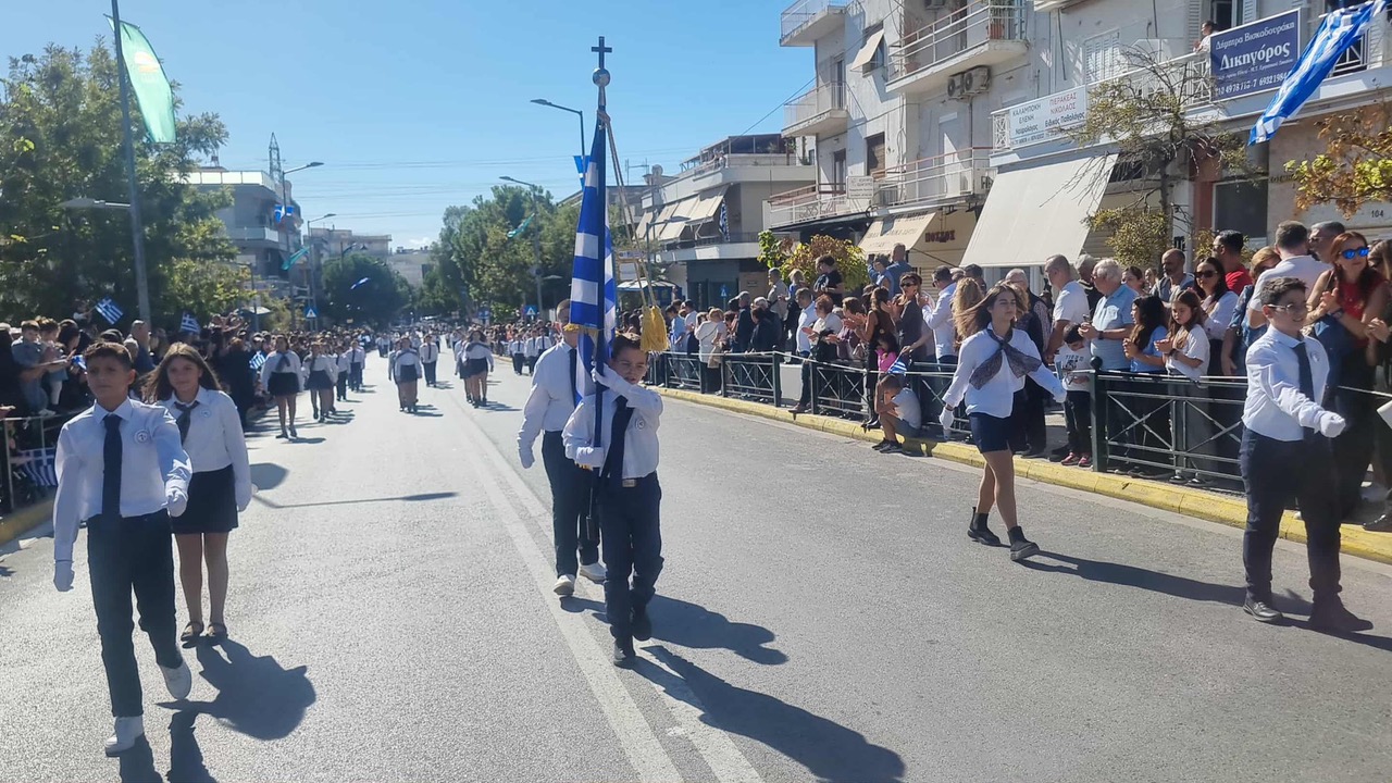 Ο εορτασμός συνεχίστηκε με την καθιερωμένη κατάθεση στεφάνων και κορυφώθηκε με την μεγαλειώδη μαθητική παρέλαση, όπου συμμετείχαν και οι πολιτιστικοί κι αθλητικοί σύλλογοι της πόλης μας, στη λεωφόρο Ελευθερίου Βενιζέλου.