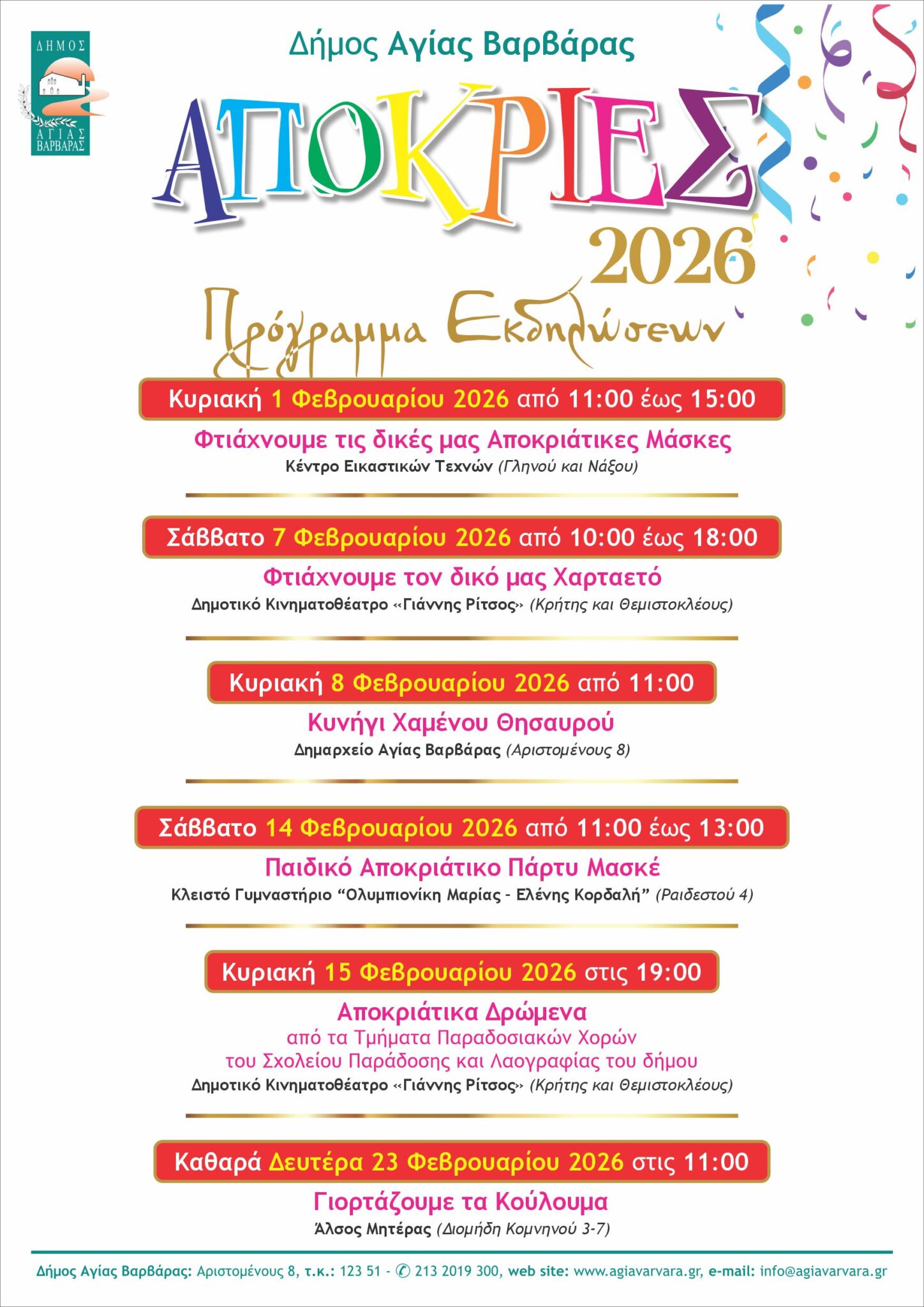 ΑΠΟΚΡΙΕΣ 2026 – ΠΡΟΓΡΑΜΜΑ ΕΚΔΗΛΩΣΕΩΝ
