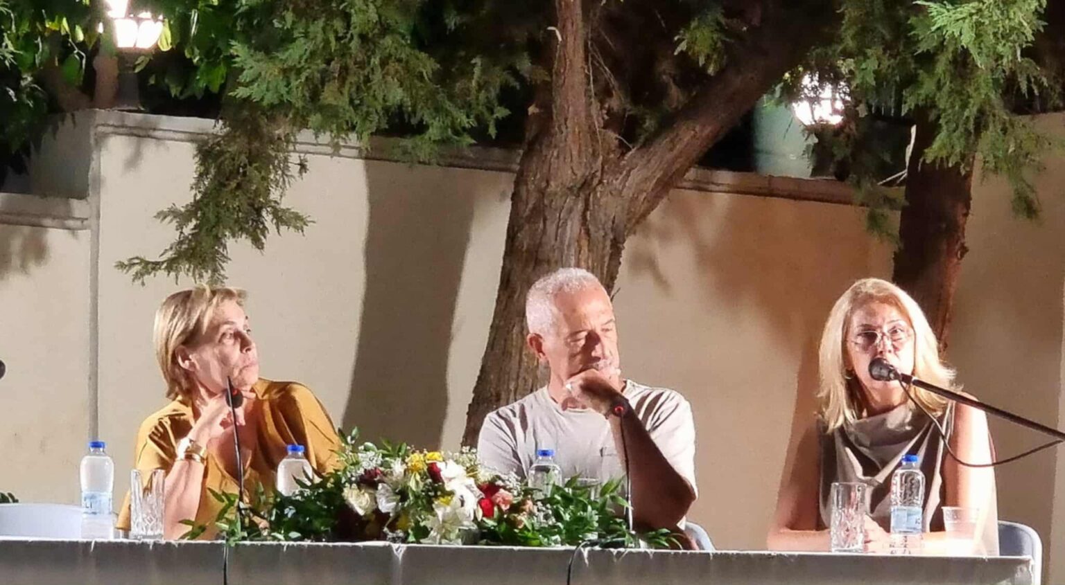 Η αντιδήμαρχος Παιδείας Αλεξάνδρα Φέγγη, ανάμεσα σε πολυάριθμους παρευρισκομένους, υποδέχθηκε τη συγγραφέα, αναφερόμενη στη σημαντικότητα του έργου της και την αξία της λογοτεχνίας για την πρόοδο του ανθρώπινου πνεύματος. Η κ.Ρουλάκη εν συνεχεία αναφέρθηκε στη δυναμική των λέξεων και την καταλυτική επιδραστικότητά τους στη σκέψη και τη συμπεριφορά μας, τονίζοντας παράλληλα το πόσο συμβάλλει η γλώσσα στον τρόπο που συμβιώνουμε μέσα στο κοινωνικό σύνολο και την αλληλεπίδραση με τους συνανθρώπους μας.